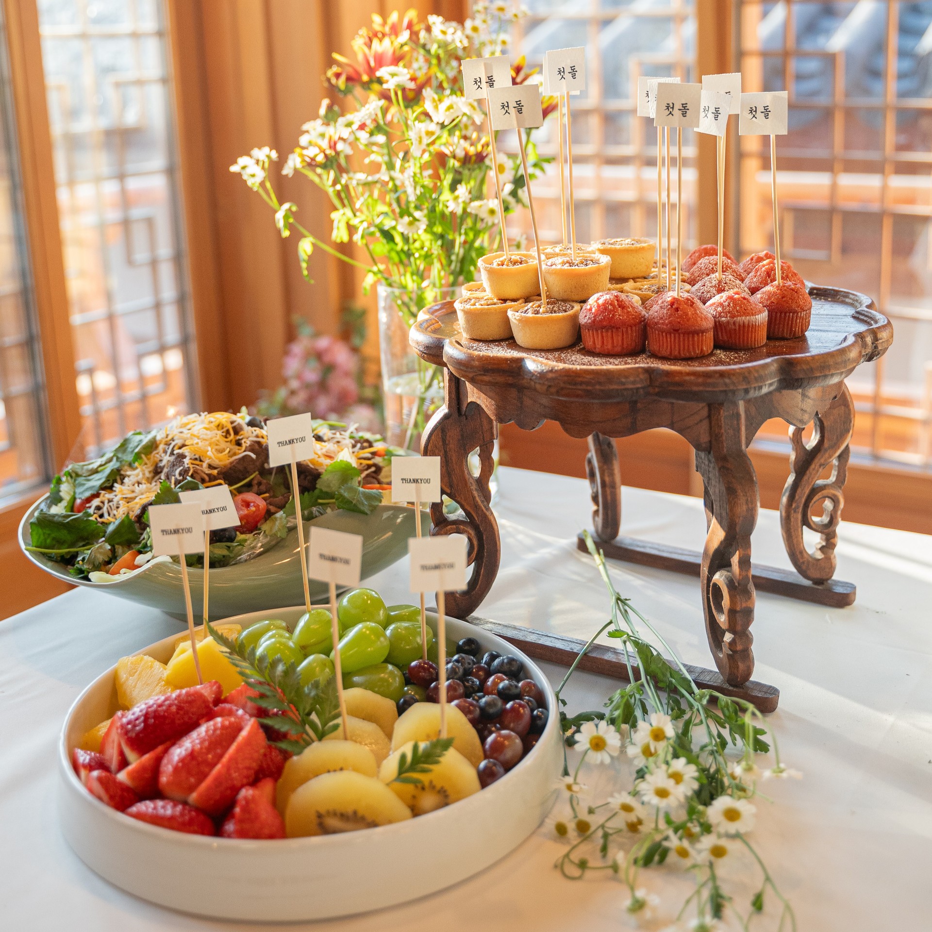 전통의 격과 한옥의 빛을 담아 완성한 식사 차림전통 공예 도자기와 대통령상 수상 식기로 품격을 더합니다